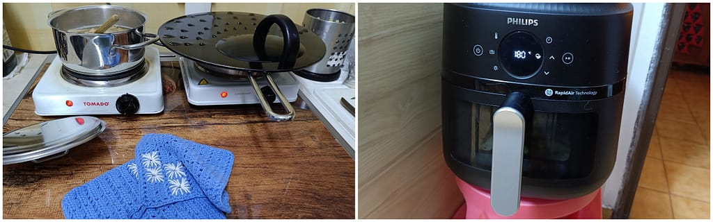 Begin december wordt het fornuis omgeruild. Wat is dat wennen: na 3 maanden weer kunnen koken op alle vier de kookzones, wauw! Maar de vreugde is van korte duur: na welgeteld 6, ja zes, dagen ‘boem’ en daarna totale duisternis en stilte in huis….. Weer grote schrik en natuurlijk enorm balen; dit is toch werkelijk niet te geloven? Helaas is dit fornuis compleet kapot, we hebben nu ook geen functionerende oven meer. Maar ons improvisatietalent scoort ondertussen hoge ogen: dankzij de twee elektrische kookplaatjes en de airfryer eten we heerlijke maaltijden. Gelukkig maar, want de monteurs komen pas ergens in januari (..). Om eerlijk te zijn: reparatie hoeft van ons niet meer, maar dat zullen we wel moeten laten gebeuren. We zijn echt klaar met dit merk inductiefornuis en zitten niet te wachten op ergere schade. Wordt vervolgd, fingers crossed, zeggen we maar.