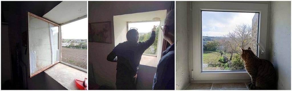 In oktober hebben we de eerste kleine renovatie uitgevoerd: het (enkel) glas van het raam in onze slaapkamer was kapot. Er zat al een breuk in maar in het voorjaar kwam daar nog eentje bij. Voor de veiligheid hielden we het raam dicht maar de beste oplossing was natuurlijk een nieuw raam. Die konden we bestellen bij de bouwmarkt en na levering heeft Hans samen met een vriend het oude raam veilig verwijderd, het nieuwe raam geplaatst en de vensterbank betegeld. Dubbel glas in een kunststof kozijn en draai-/kiepmogelijkheid: we zijn er heel blij mee!